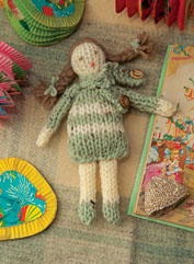 Old buttons and flecked wool give this doll a wonderful vintage look. Knit the hat and scarf to keep her warm